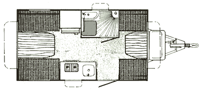 Acessórios: Fogão 2 bocas c/ forno, geladeira gás/elétrica 90 Lts, transformador de voltagem 220/110/12V de 300W, sanitário de louça, chuveiro à gás TG.