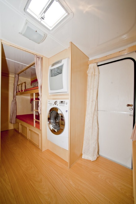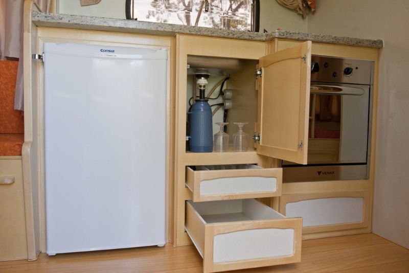 no beliche, uma janela de acrílico média na cozinha, uma janela de